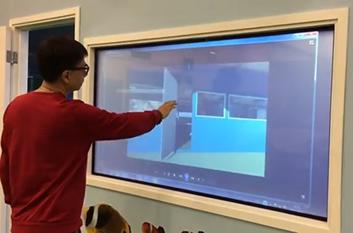 調(diào)光玻璃(霧化玻璃)具備良好的投影顯示性能,在玻璃霧化狀態(tài)下,配合高清投影機(jī),背投出精彩清晰畫質(zhì),更可加入觸控設(shè)備,實(shí)現(xiàn)手指觸控屏幕操作。